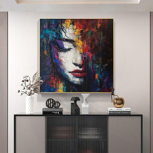 Regular price From $168.63Regular priceUnit price / per$422.63Sale price From $168.63Original Colorful Woman Texture Canvas Oil Painting Abstract Model Girl Painting Large Portrait Female Body Wall Art Living Room Home Decor
