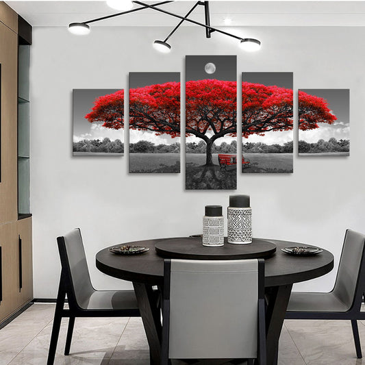 Canvas Wall Art Red Tree Wall Art with Moon Black and White Landscape Pictures for Wall Decor Large Pictures for Living Room 5 Pieces