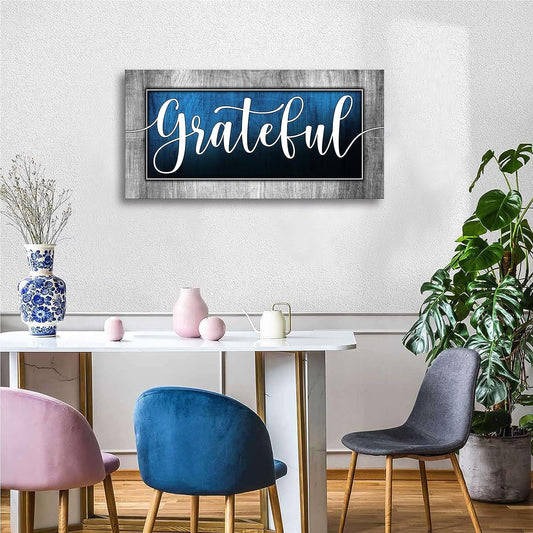 Inspirational Quotes Wall Art for Living Room|Grateful Signs for Home Decor|Grateful Wall Decor|Blue Family Canvas Print Poster Painting Picture Artwork,Bedroom Dining Room Wall Decor 20"x40"